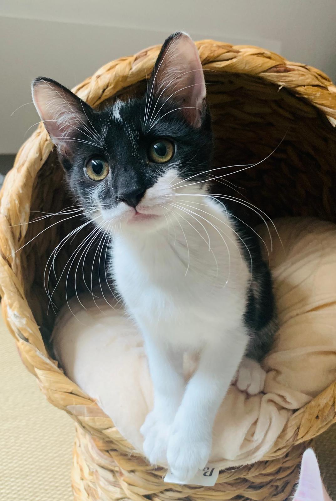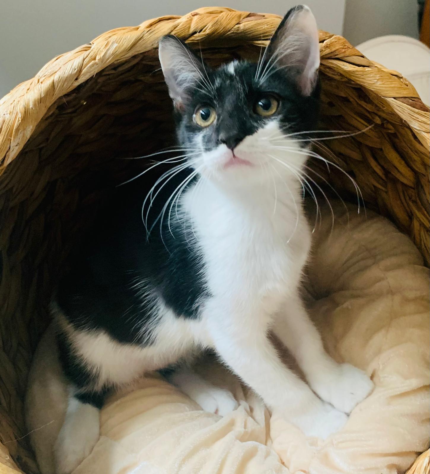 Con su manto negro y blanco y ese antifaz natural que le cubre la carita, Batman parece salido de un cómic. Es juguetón, curioso e independiente, siempre en busca de aventuras y con energía de sobra para saltar, explorar y conquistar corazones.