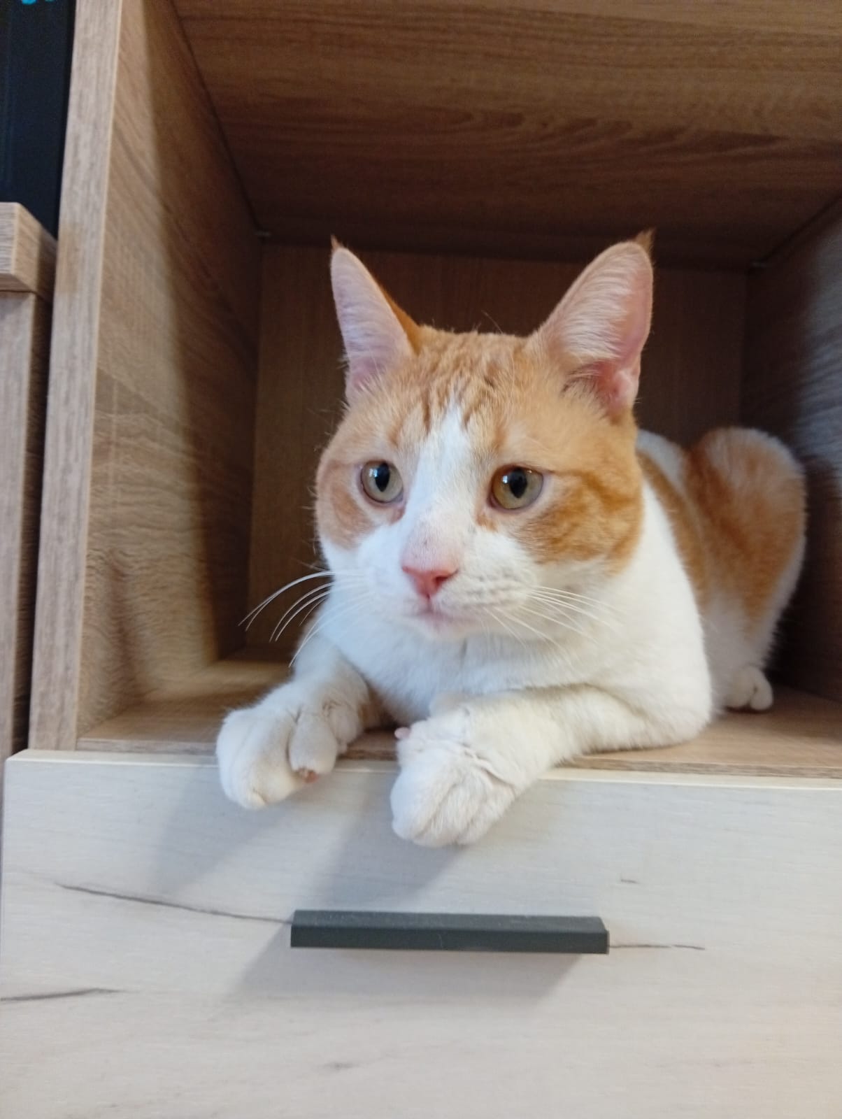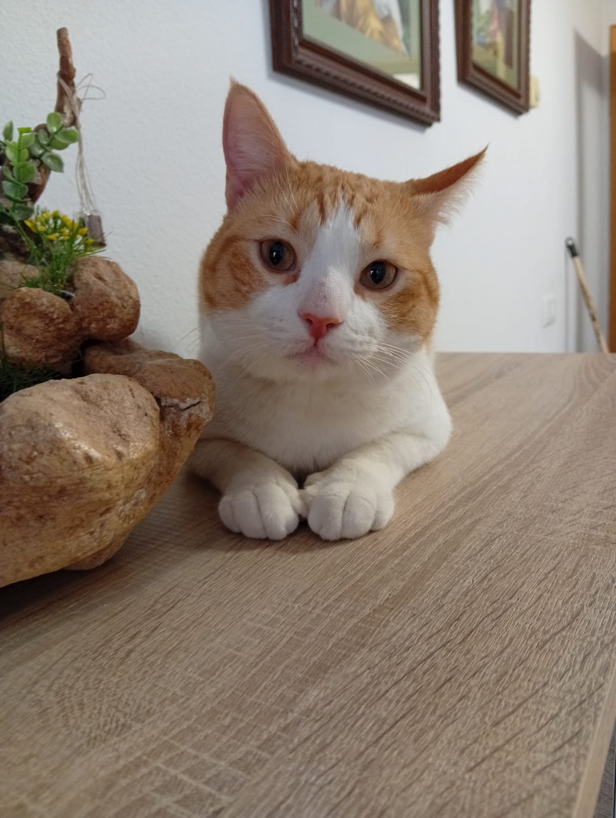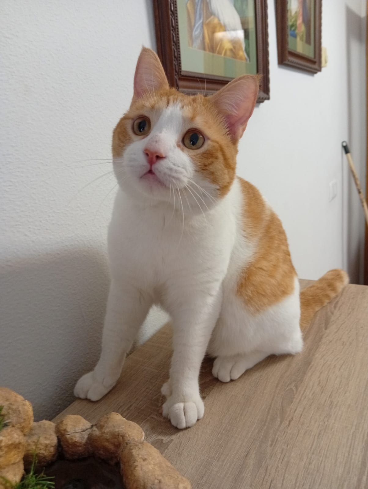 • Personalidad: Es un gatito curioso, tierno y equilibrado. Le encanta jugar, recibir caricias y se deja coger en brazos sin problema. Tiene un carácter respetuoso y dulce, ideal para quienes buscan un compañero tranquilo pero con chispa.