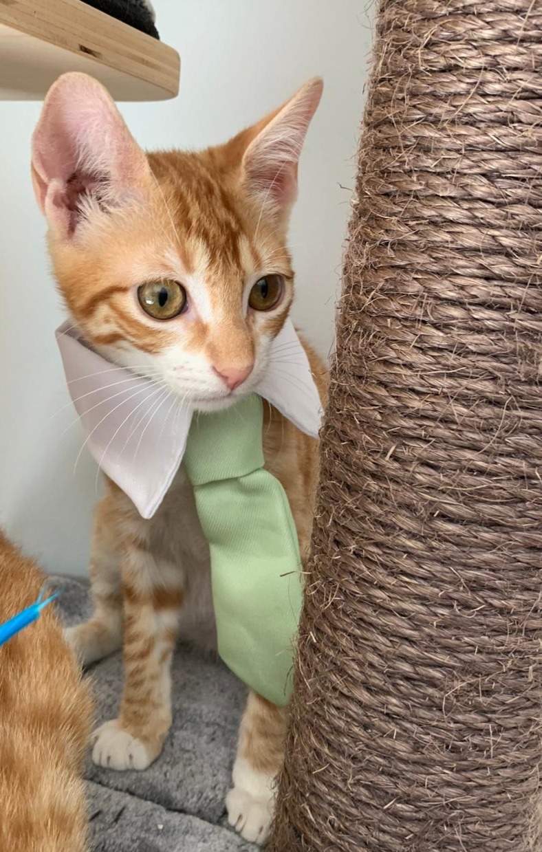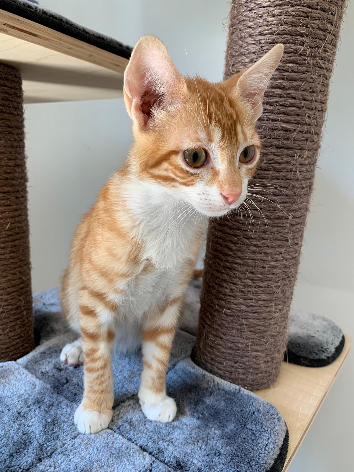 Kairo está listo para conquistar corazones con su pelaje rubio -salpicado de destellos blancos- y su porte esbelto de «modelo felino». Alto, delgado y elegante, luce unos ojos grandes y expresivos que parecen narrar mil aventuras mientras piden caricias sin pronunciar palabra. Curioso y vivaracho, es ese pequeño torbellino que recorre la casa con patas larguísimas, explora cada rincón y, en cuanto te descuidas, vuelve como una dulce sombra en busca de mimos.