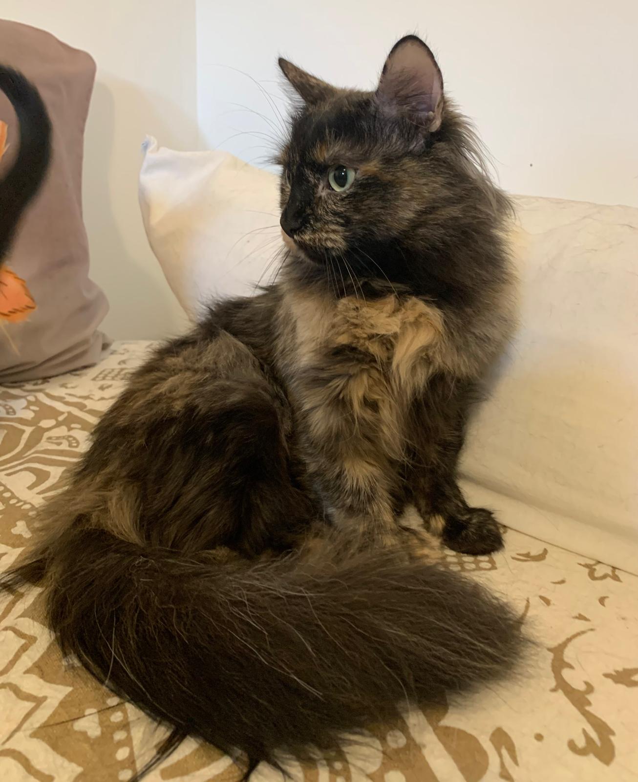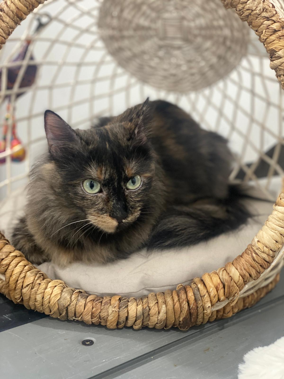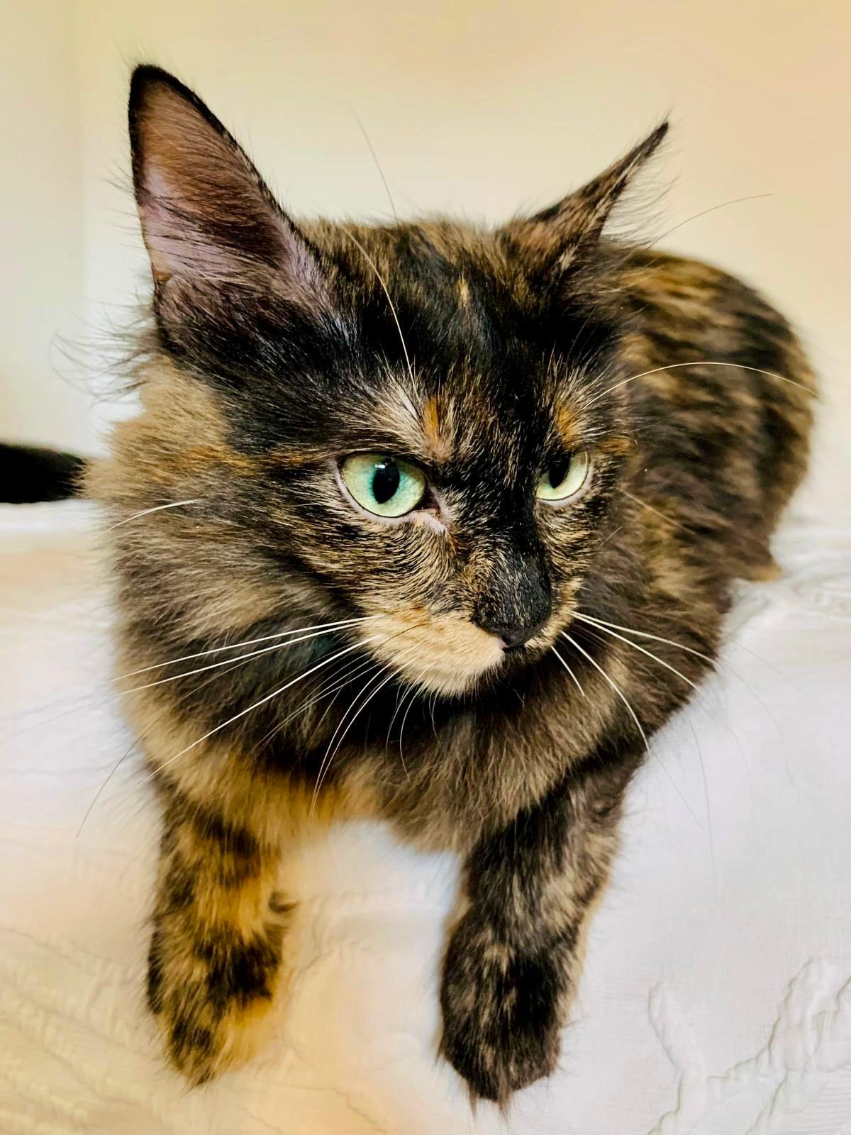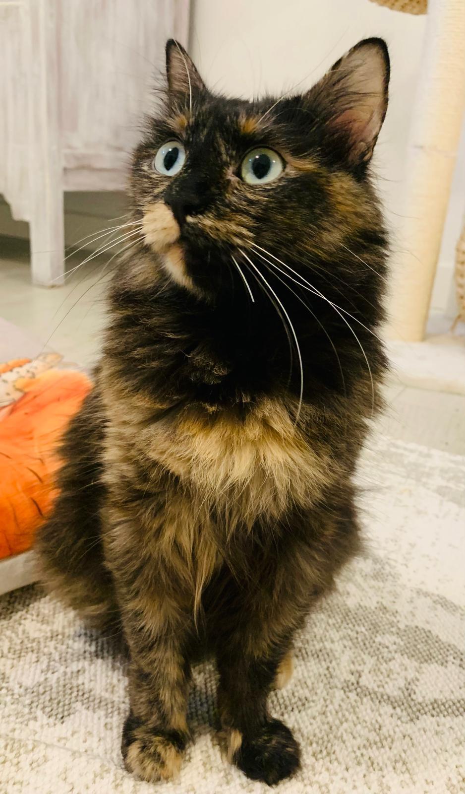 Con solo 9 meses y unos ojos azules tan grandes como su deseo de ser feliz, Kali es una gatita que te robará el corazón. Es una preciosa carey de pelo largo, rescatada de una situación difícil: separada de sus crías por puro entretenimiento infantil. A pesar de esa experiencia, Kali no ha perdido la fe en las personas.