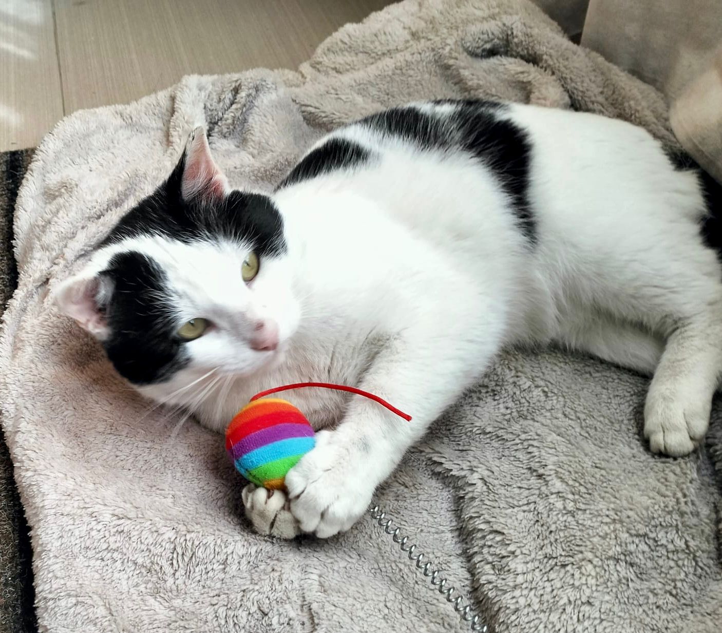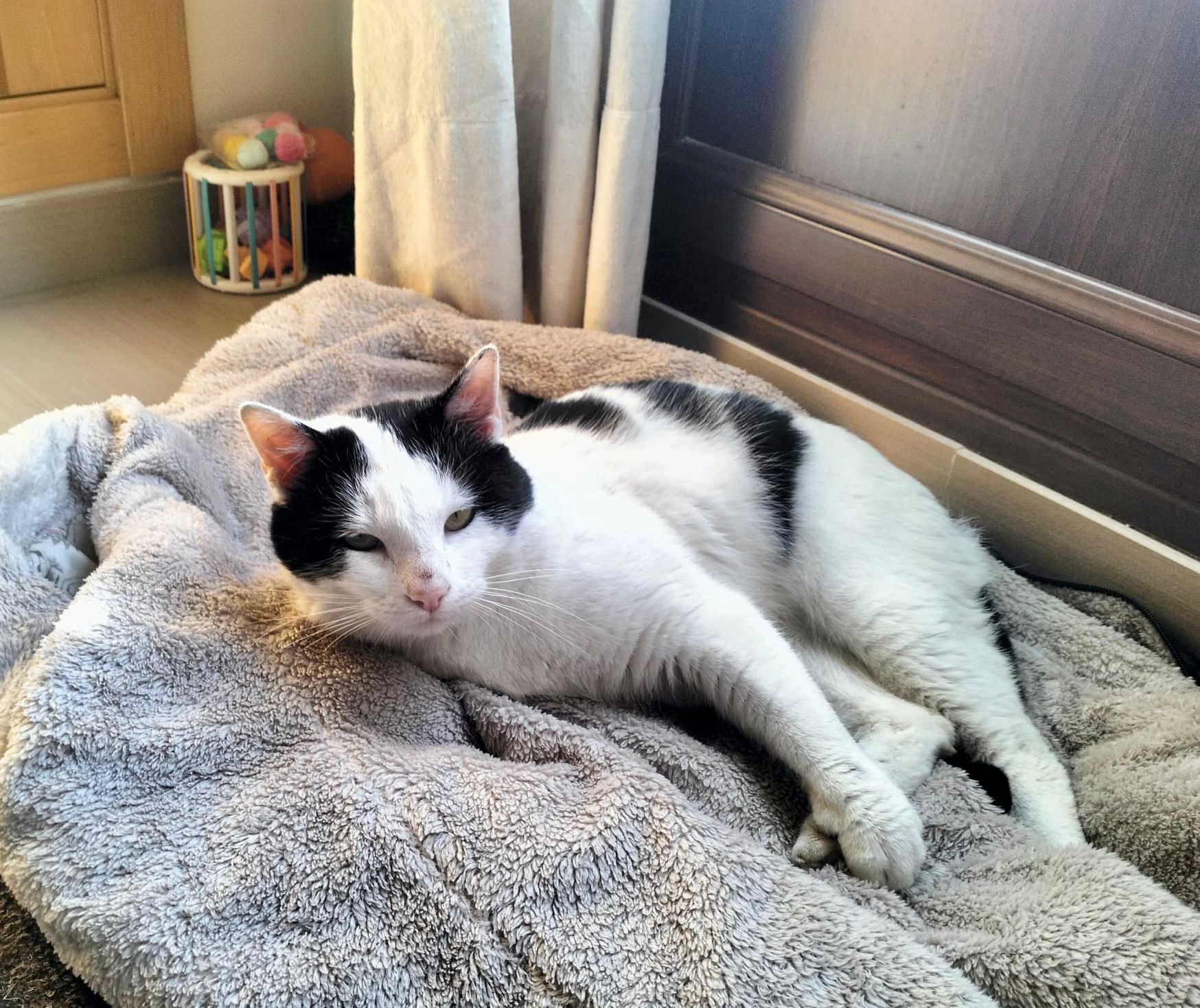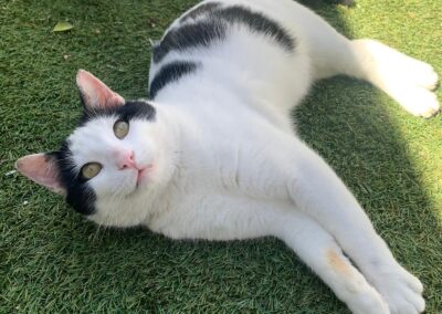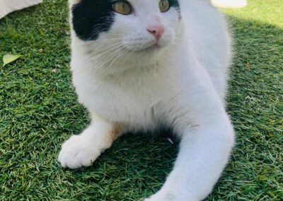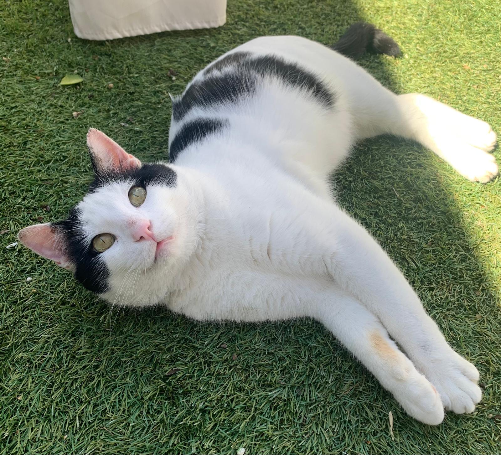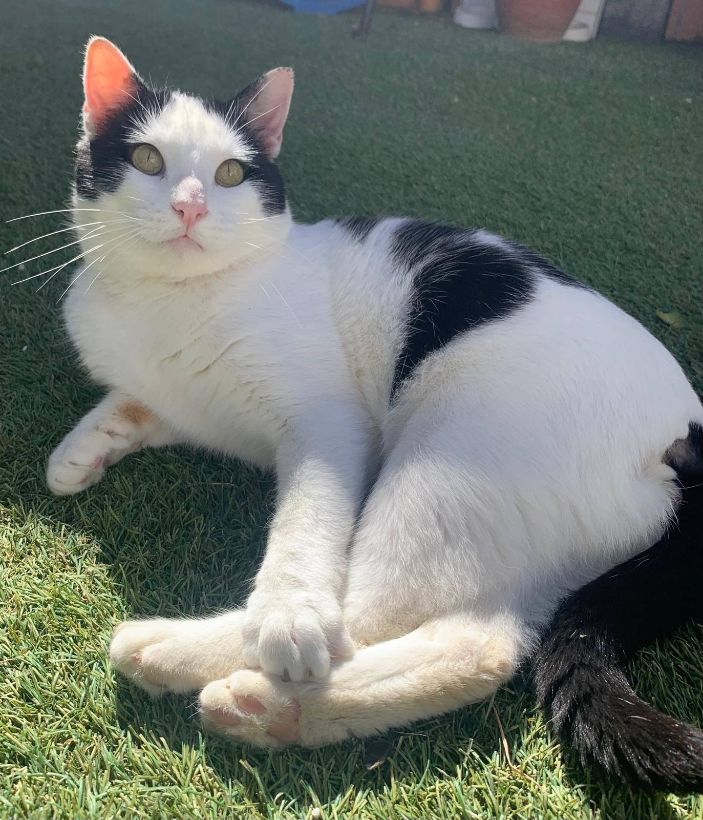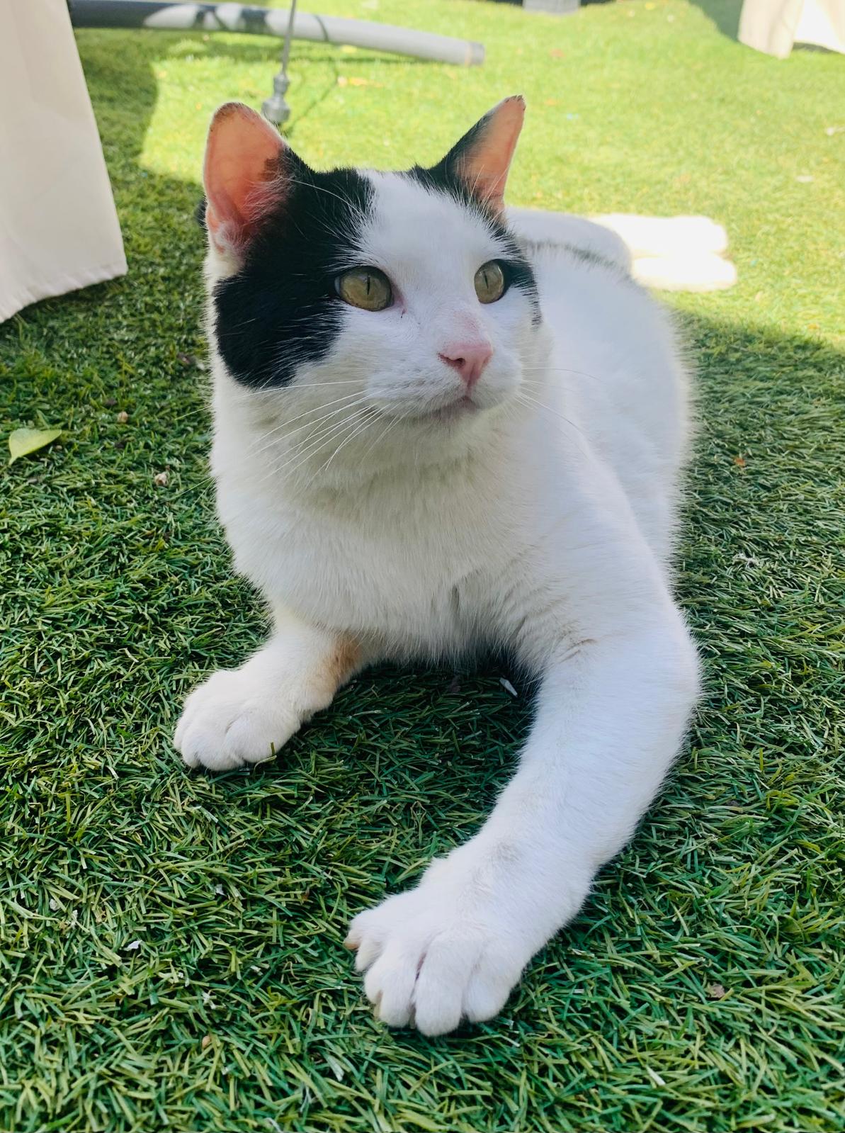 Teo es un precioso gato blanco y negro, de mirada cautivadora, tierna y profunda, de esas que conectan al instante. Es un gato elegante, con una presencia serena y unos modales impecables que lo hacen aún más especial. Aunque es grande, lo que realmente destaca en él es su enorme corazón. Es dulce, tranquilo y muy cariñoso. Disfruta muchísimo de la compañía humana, busca el contacto, los mimos y esos momentos de calma compartida. Tiene una forma de estar que enamora: se adapta, observa y se acerca con delicadeza, como si entendiera perfectamente cada situación. De hecho, por su comportamiento, a veces parece más un perro que un gato: fiel, cercano y profundamente conectado con las personas. Se lleva genial tanto con humanos como con otros gatos, lo que lo convierte en un compañero ideal para un hogar donde ya haya otros animales o para alguien que busque un gato equilibrado y sociable.